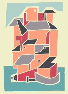 Anyway, I didn't draw the monastery. This view is looking the other way, showing the houses built right up to the cliff edge, or the cliff erosion makes it appear this way. Some seem like they've been sculpted from the rock. Of course, it could be anywhere by the time I finished with it, but having read this you can say 'ah, that's Tropea, right there'.